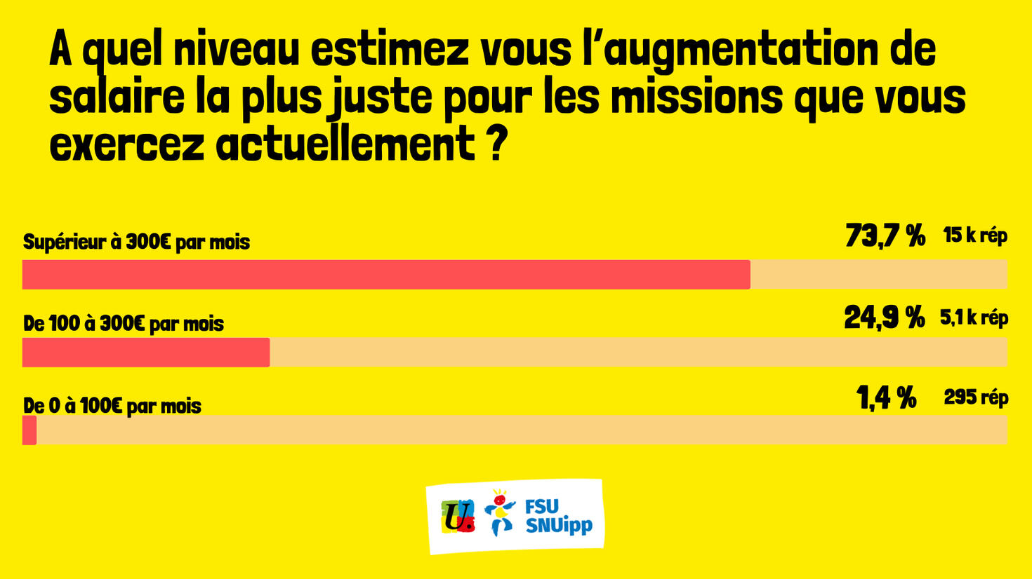 73,7% des personnels considèrent qu’une augmentation d’au moins 300 euros serait juste au vu des missions effectuées.