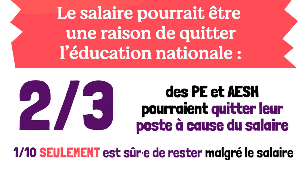 98,2 % des personnels considèrent que l’engagement de revalorisation pris par l’exécutif n’est pas tenu.73,7 % des répondant·es estiment qu’une augmentation supérieure à 300 € nets par mois serait juste pour les missions exercées.2 personnels sur 3 pourraient quitter leurs postes à cause du salaire.